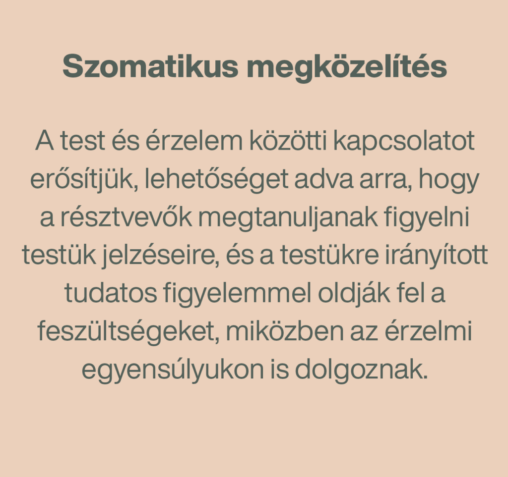 A „szomato” (testi) kifejezés arra utal, hogy a folyamat során kiemelt figyelmet kapnak a test érzetei, tünetei, betegségei. A testi jelzéseket nem csupán fizikai problémaként értelmezzük, hanem a belső tudattalan működés, a lélek üzeneteinek hordozóiként közelítünk hozzájuk.
